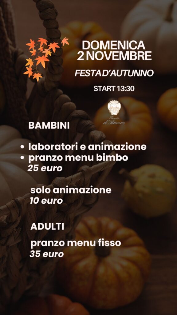 ππππππππ 2 NOVEMBRE ti aspettiamo a pranzo per vivere insieme una giornata piena di magia autunnale tra laboratori creativi, giochi, pranzo… il divertimento Γ¨ assicurato! π§π§